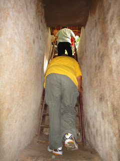 terowong ni ada 3 level... 1st level, dalam 6-7ft gitu... boleh jalan itik or kalo lenguh kaki, merangkak la jawapnye... 2nd level, 15-20 ft rasanya.. kat 2nd level, kena meniarap dah... 3rd level, 30 ft kot... hanya org2 yg kurus kering je dibenarkan masuk... mmg kecik bangat...